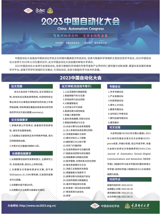 另外,2023中国自动化大会征文正在进行中,热诚欢迎广大科技工作者积极投稿参与!