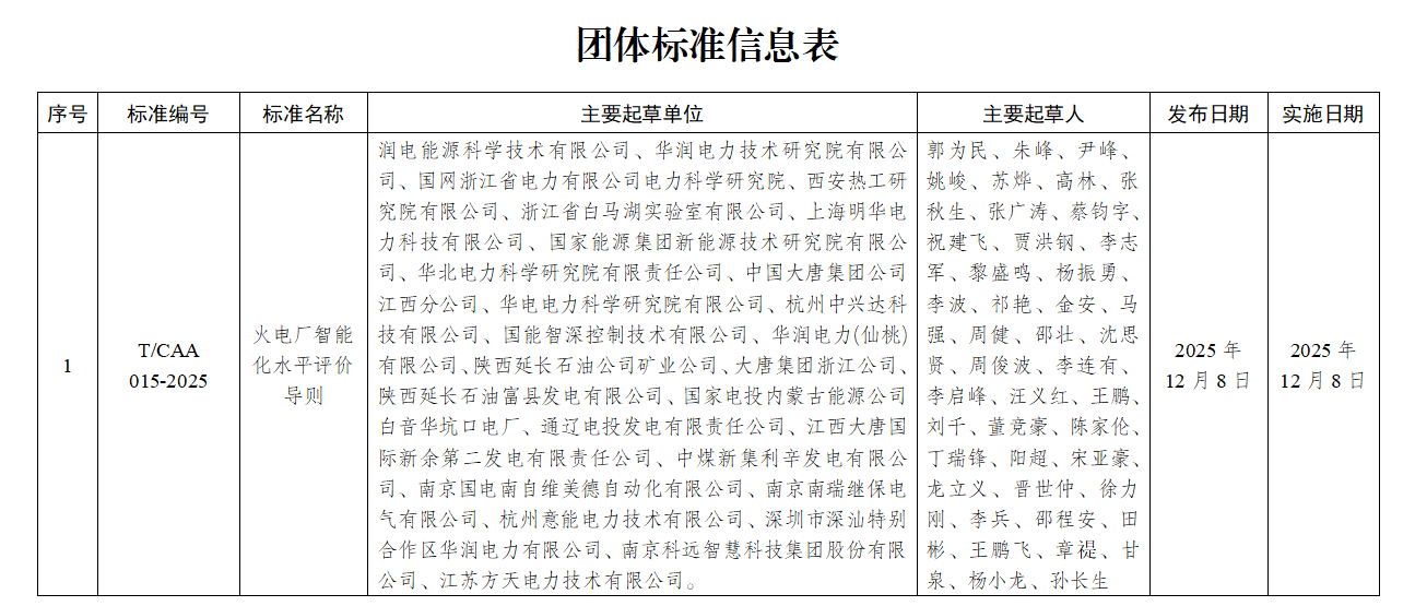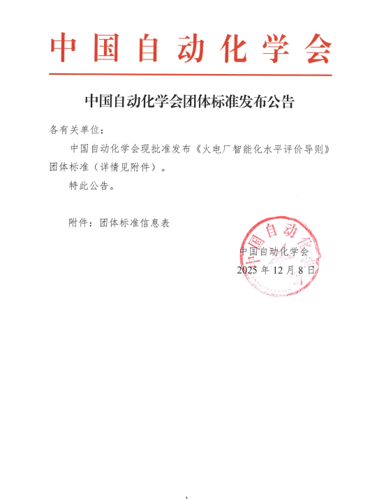 中国自动化学会现批准发布《火电厂智能化水平评价导则》团体标准(详情见附件)。