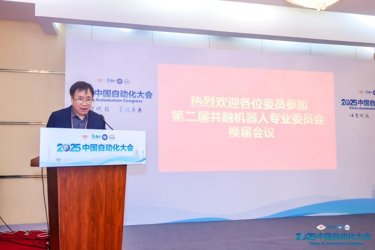 2025年10月12日,中国自动化学会共融机器人专业委员会换届大会以“线上+线下”相结合的形式在哈尔滨国际会议中心成功召开。中国自动化学会副理事长、中国科学院自动化研究所侯增广研究员,中国自动化学会秘书长张楠,第一届中国自动化学会共融机器人专业委员会委员和第二届候选委员等专家领导出席会议。