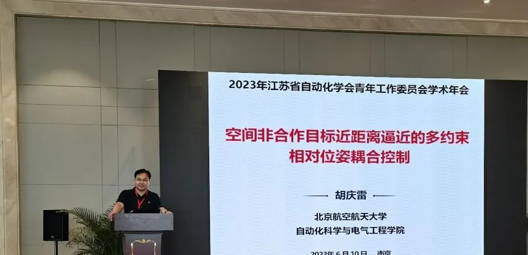 北京航空航天大学胡庆雷教授作了题为“空间非合作目标近距离逼近的多约束相对位姿耦合控制”的报告,他面向空间非合作目标近距离操作任务,主要介绍了团队近期在航天器相对位姿一体化动力学建模、多约束相对位姿耦合控制以及地面半物理试验验证方面的研究进展,并就逼近操作控制技术当前存在的问题以及未来发展进行讨论。