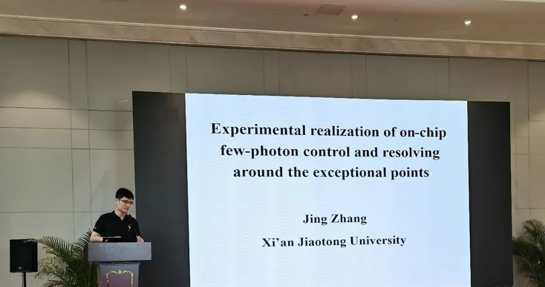 西安交通大学张靖教授作了题为“Experimental realization of on-chip few-photon control and resolving around the exceptional points”的报告,指出使用非厄米片上超导量子电路可以使得即使在少光子状态下也可以实现单向微波传输。