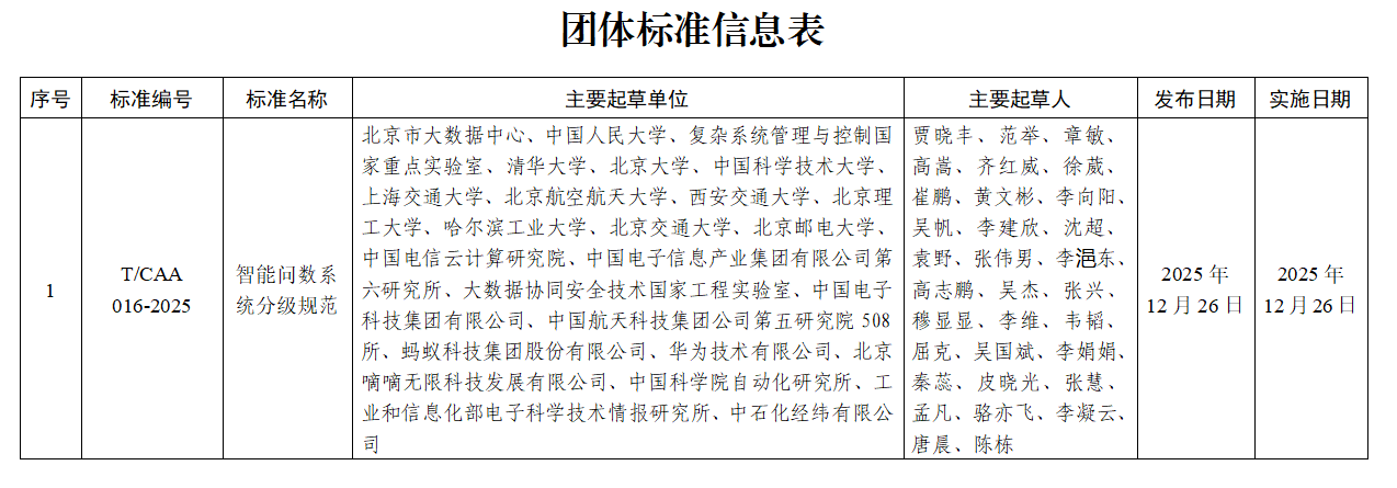 中国自动化学会现批准发布《智能问数系统分级规范》团体标准(详情见附件)。
