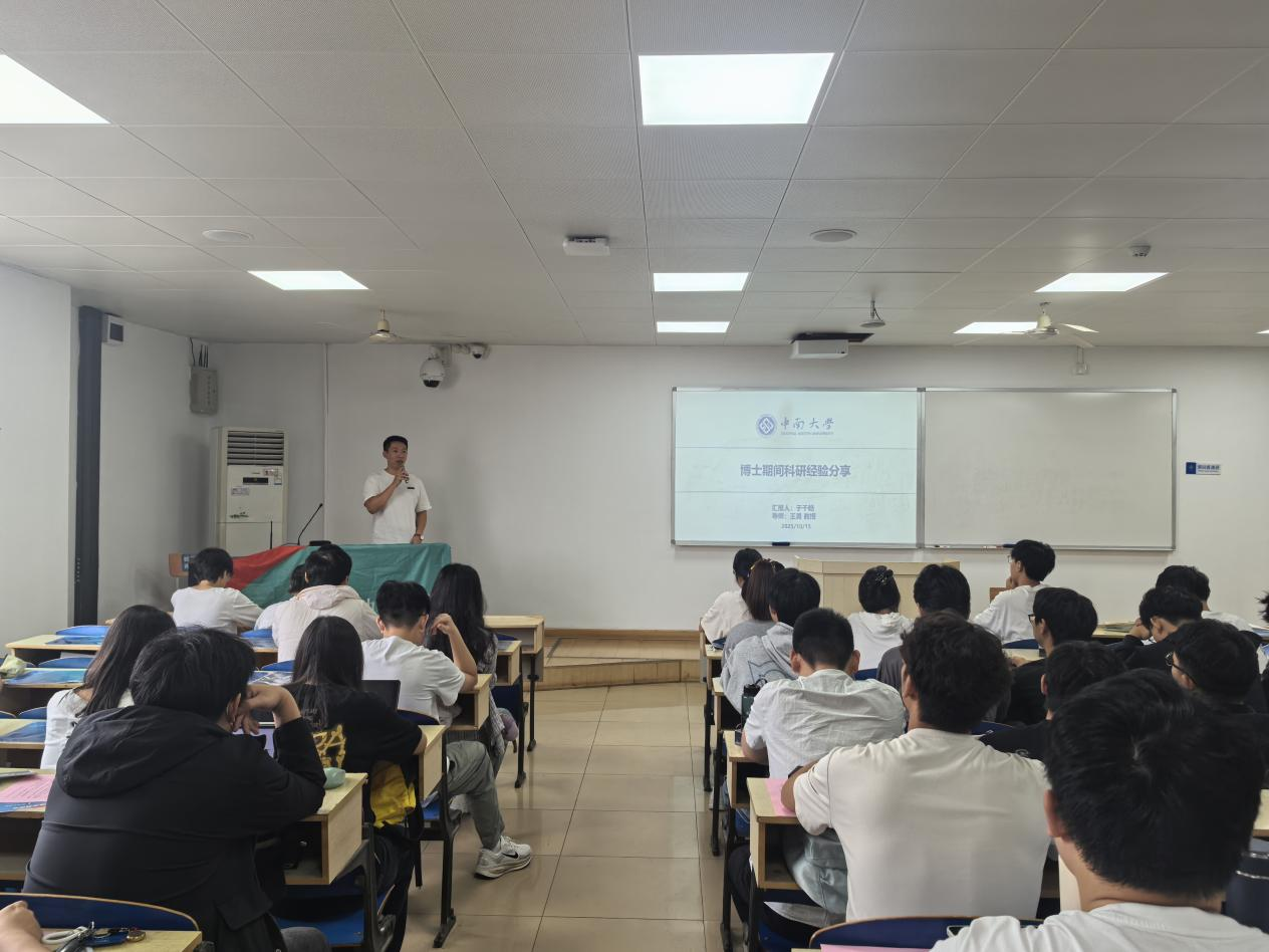 2020 级博士于千皓以 “从 0 到 1 的科研起步:选题 — 方法 — 产出” 为主题分享科研经验。他从选题、文献检索、实验设计、论文写作四个核心环节展开,强调选题需兼具科学性、创新性与可行性,详细讲解论文结构及摘要的重要性,并提醒新生规避 “盲目模仿论文代码而不解释原理” 等常见误区,最后祝福新生早日发表成果、顺利毕业。